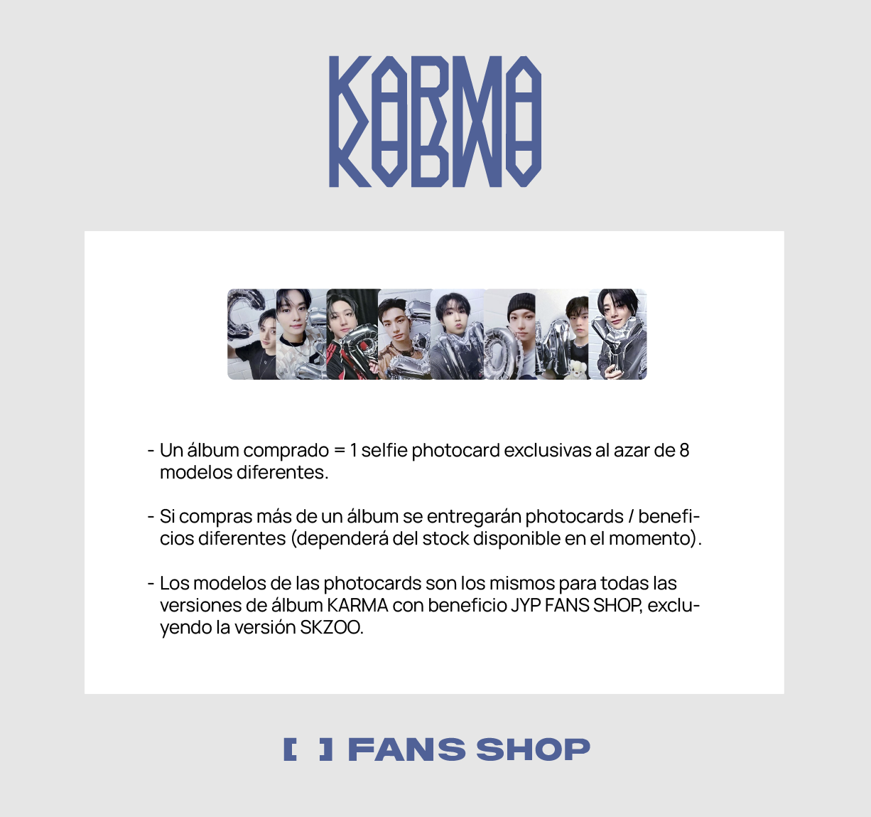 - SI COMPRAS MÁS DE UN ÁLBUM SE ENTREGARÁN PHOTOCARDS DISTINTAS. (DEPENDERÁ DEL STOCK DISPONIBLE EN EL MOMENTO).